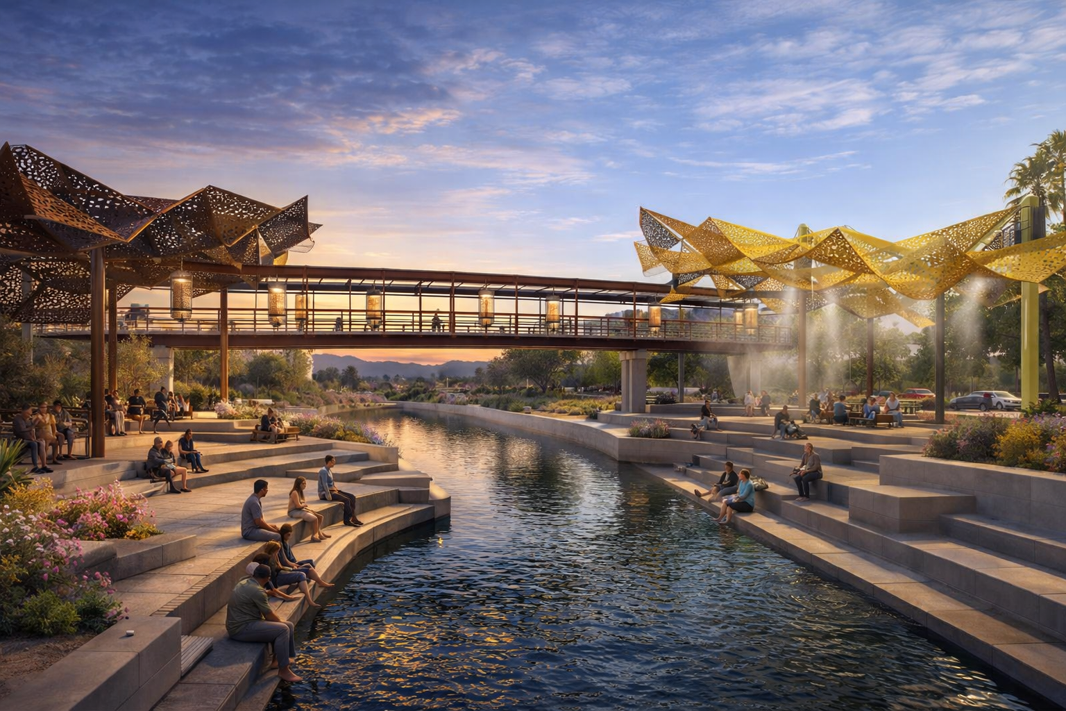 If that is true, Phoenix should not aim merely to survive. It should aim to turn desert limits into visible civic culture. The question is not only how to engineer water and heat, but how to let those realities shape public life in a way that builds community. The ancient canal systems likely required recurring forms of gathering, coordination, obligation, and shared identity. A contemporary version could include neighborhood-scale water harvesting, shaded public rooms, canal-edge paths, wash corridors, and civic landscapes that invite participation in basin life. The infrastructure should not remain hidden. It should teach, gather, and help create a culture rooted in this place rather than generic sunbelt convenience.