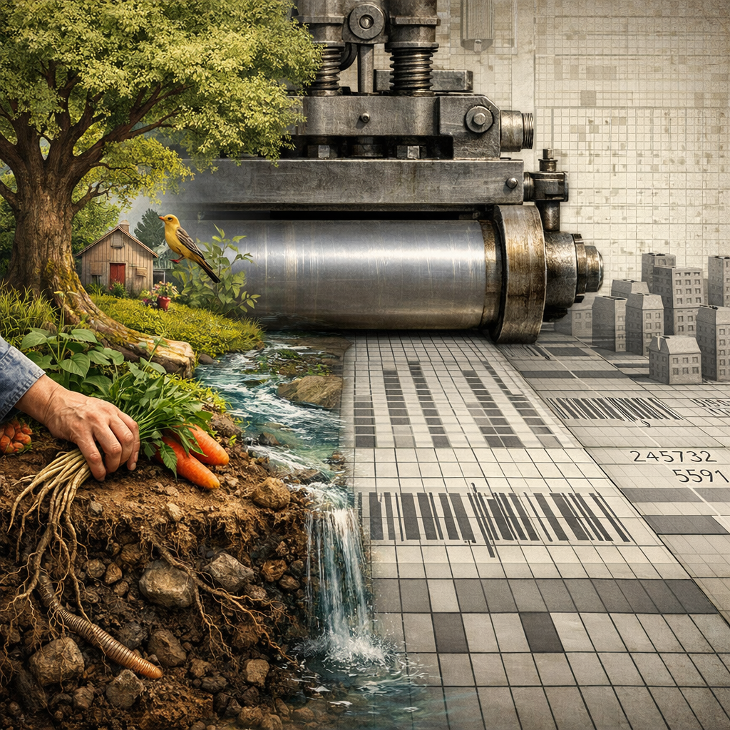 That is why I do not want this section to become a sentimental attack on technology or modern farming. The truth is harder, and therefore more useful. Industrial agriculture solved real problems. It also created new dependencies and moved consequences outward into systems large enough that most people no longer perceive the link between cause and effect. That is the bargain. We gained output and predictability, but often by simplifying life into an industrial logic that does not know how to count fertility except as input, land except as substrate, or nature except as a set of controllable variables.
